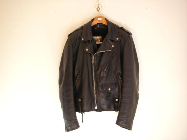 schootと言うメーカーのダブルのちょっと珍しい形の皮ジャン。